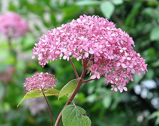 Высота взрослого куста достигает 1,2 метров, что позволяет использовать его как в одиночных посадках, так и в групповых композициях. Гортензия Pink Annabelle прекрасно смотрится в живых изгородях, миксбордерах и цветочных клумбах.