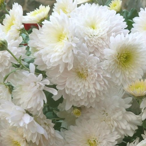 Хризантема мультифлора Домино Уайт – это великолепное украшение для вашего сада или балкона. Этот сорт отличается обильным цветением и компактной формой куста, что делает его идеальным для создания ярких цветочных композиций. Белоснежные цветки, собранные в плотные соцветия, придают растению элегантный и утонченный вид.