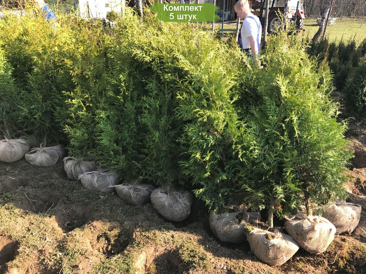 В комплект входит 5 саженцев туи 'Брабант' высотой 100-150 см. Растения упакованы таким образом, чтобы обеспечить их безопасную транспортировку и прибытие в отличном состоянии.