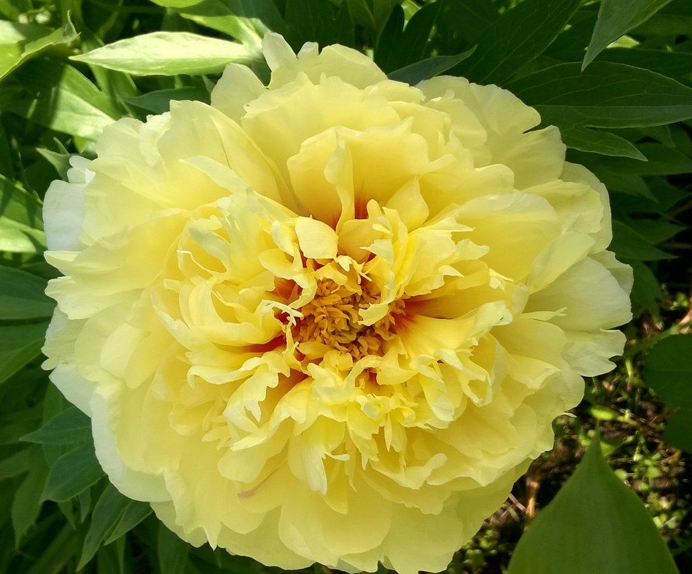 Пион Голден Ислес обладает крепкими, устойчивыми к ветру стеблями. Листва у этого сорта густая, темно-зеленая, что создает прекрасный контраст с яркими цветами. Этот пион прекрасно подходит для создания живых изгородей, клумб и одиночных посадок.