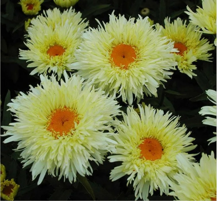 Растение достигает высоты до 60-70 см, образуя плотные кусты с крепкими стеблями и темно-зелеными листьями. Нивяник Голдрауш предпочитает солнечные места и хорошо дренированные почвы, устойчив к засухе и неприхотлив в уходе. Идеально подходит для создания цветочных композиций, бордюров и клумб, а также для срезки в букеты.