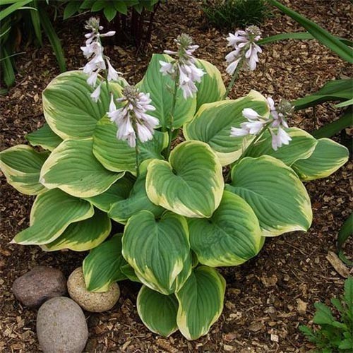 Хоста "Фрагрант Букет" (Fragrant Bouquet) – это великолепное многолетнее растение, которое станет настоящим украшением вашего сада. Этот сорт хосты отличается крупными, сердцевидными листьями с ярко-зелёной окраской и широкой кремово-белой каймой. Листья имеют глянцевую поверхность, что придаёт растению особую декоративность.