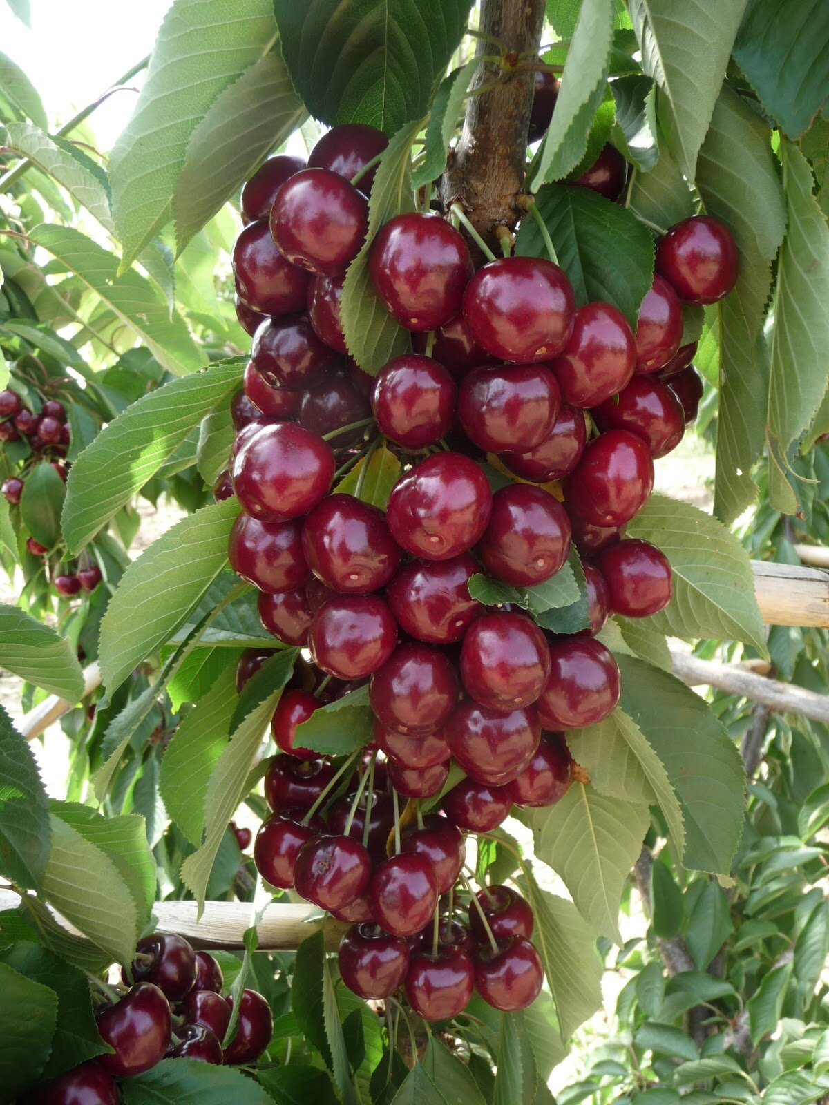 - Плоды: Крупные, темно-красные, сочные и сладкие